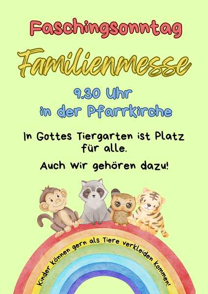 Faschingsmesse Herzliche Einladung! Kinder können gern als Tiere verkleidet kommen! mehr: Faschingsmesse